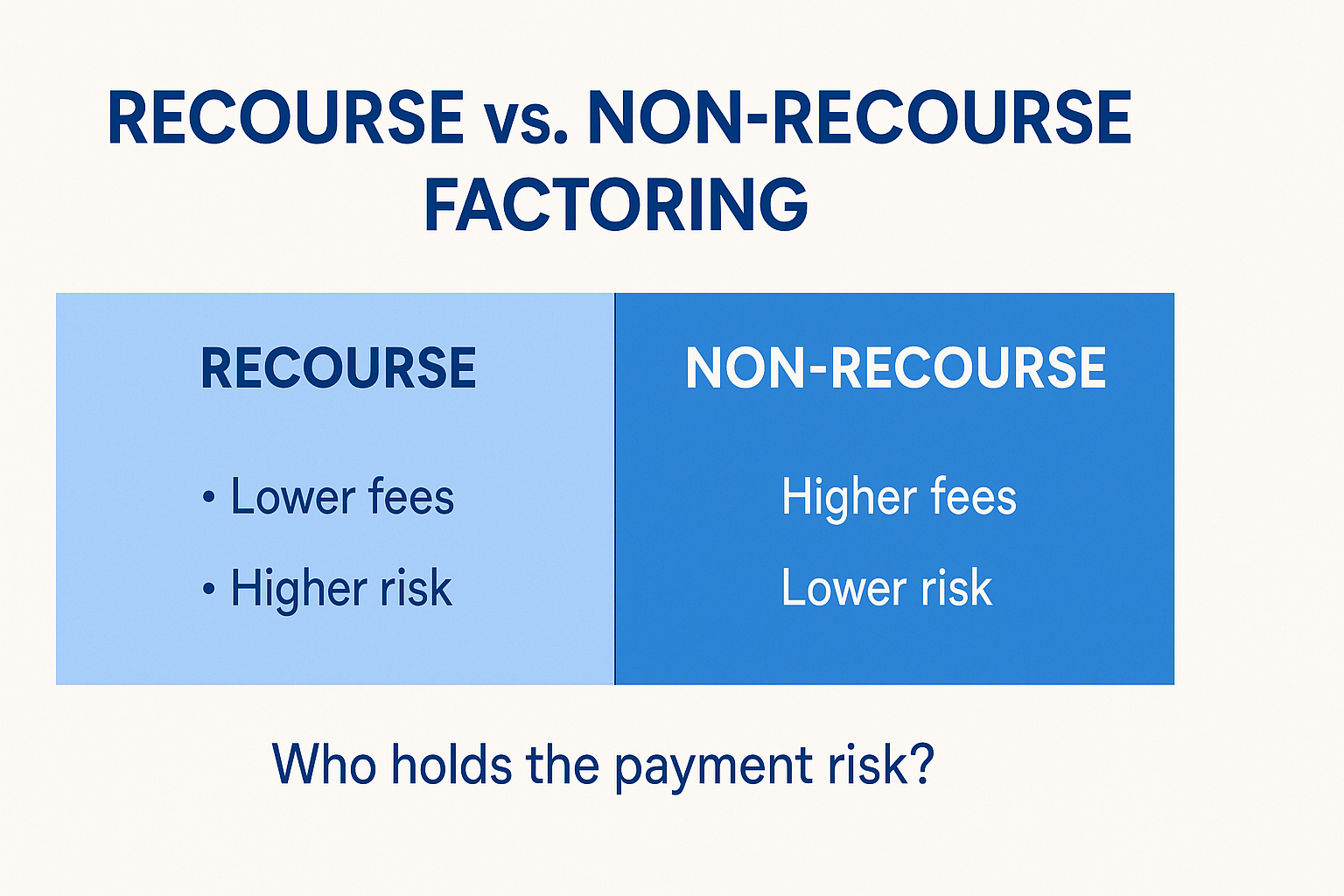 Factoring agreements can be categorized into two main types—recourse and non-recourse—each serving different business needs. There are two types of factoring agreements. These are recourse factoring and non-recourse factoring.